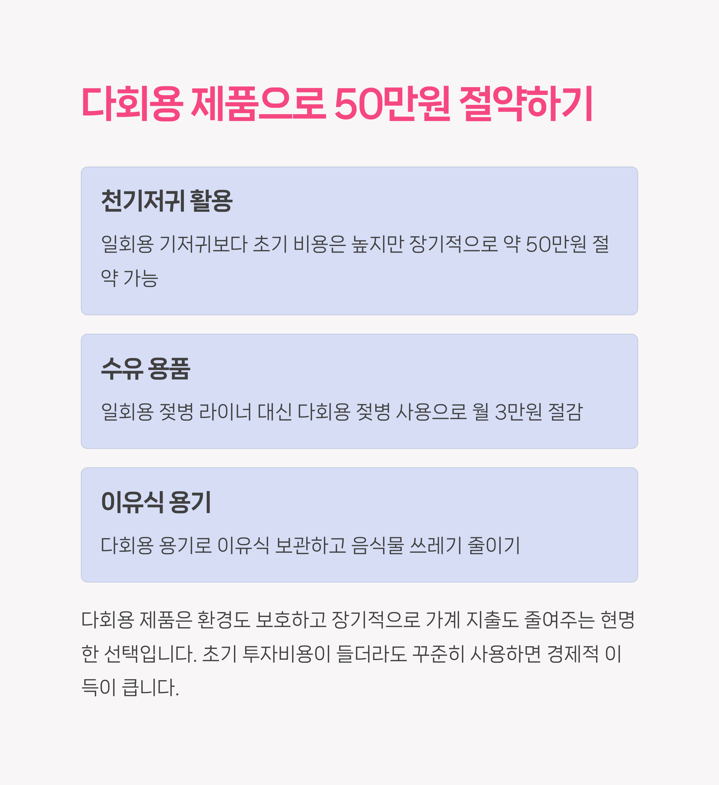 육아 비용 절감 | 다회용 제품 활용과 중고 거래로 매달 비용 절감 |