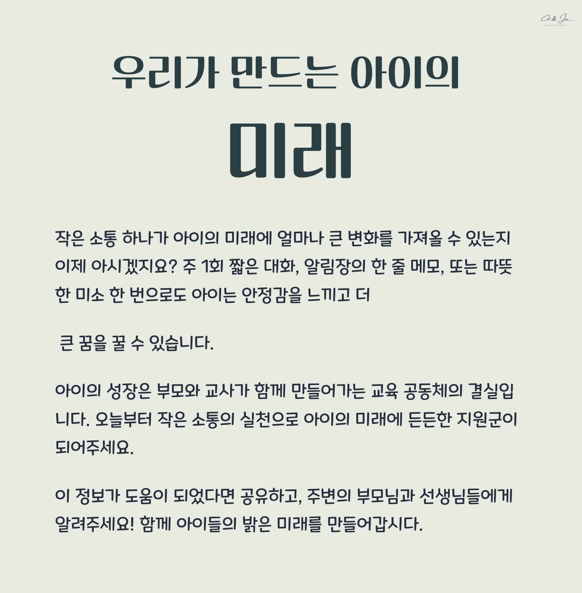 결국 부모와 교사 모두 아이를 위한 마음은 똑같습니다. 서로의 입장을 이해하고, 자주 대화하고, 짧은 메모 한 줄이라도 주고받으며 아이에게 ‘우리 모두가 너를 위해 함께하고 있어’라는 안정감을 주는 것, 그게 진짜 중요한 거 같아요. 저도 오늘, 알림장에 짧게나마 메모 한 줄 남겨보려구요! 😊 여러분도 같이 해보실래요?