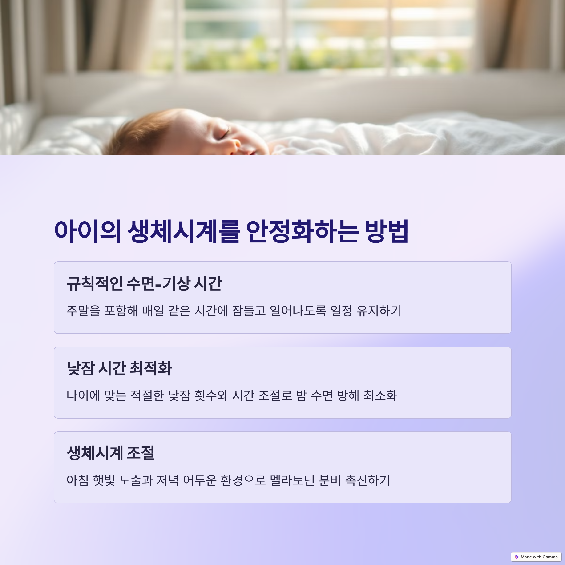 | 여러 방법을 동시에 시도 | 명확한 기준과 꾸준한 지도 | 스스로 잠들기 연습, 인내심 |