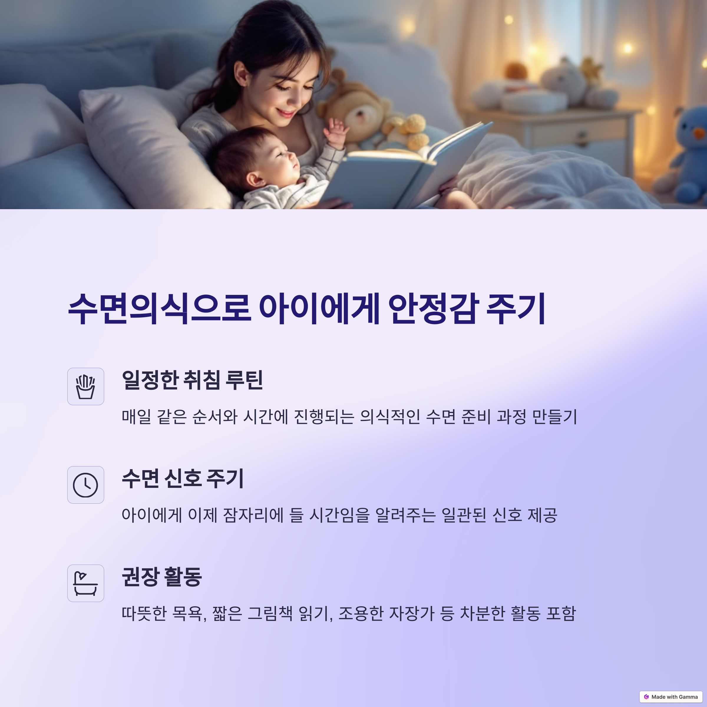 수면교육 핵심 | 확신을 갖고 일관되게 실천하는 것입니다. |