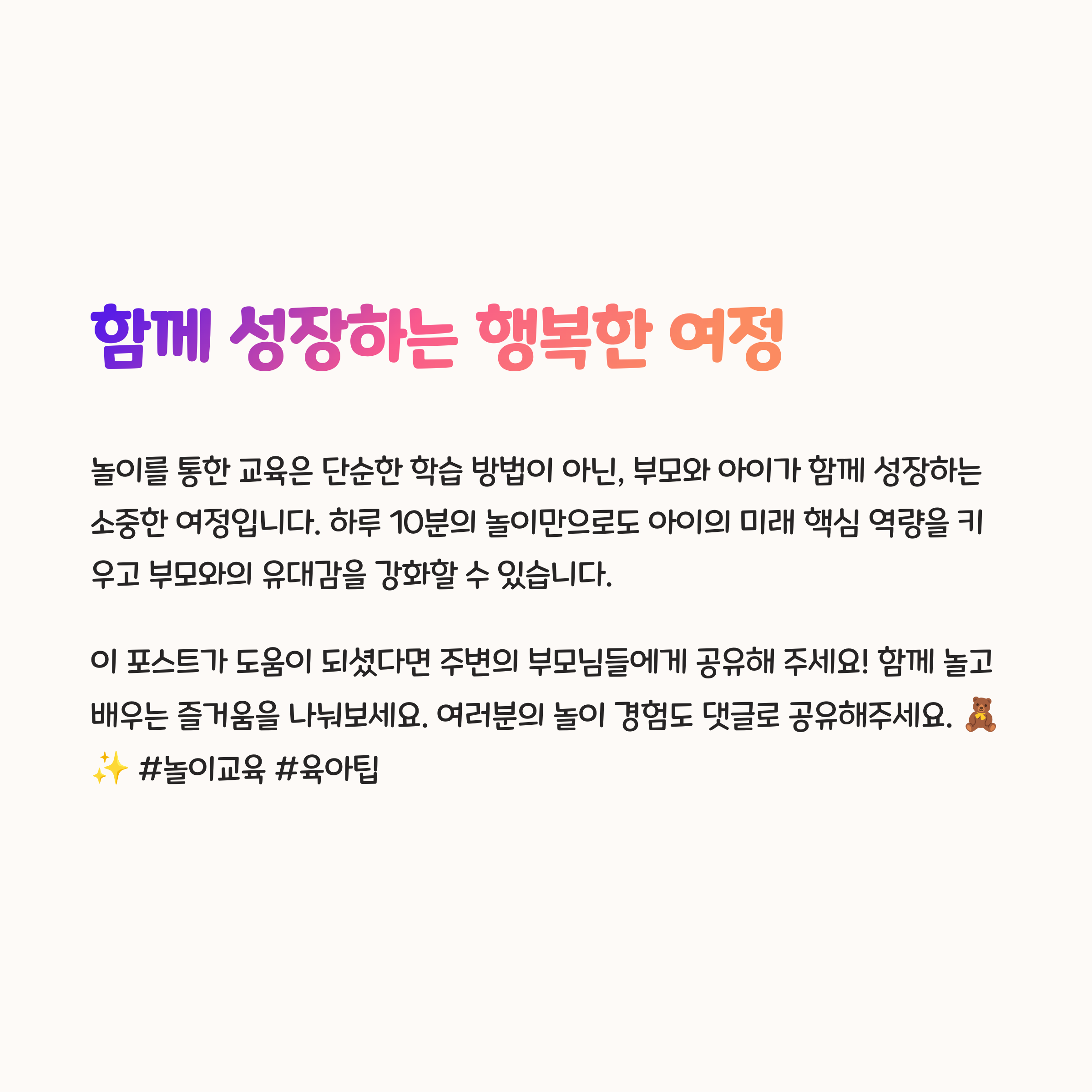 부모와 아이가 함께 성장하는 특별한 놀이 교육법