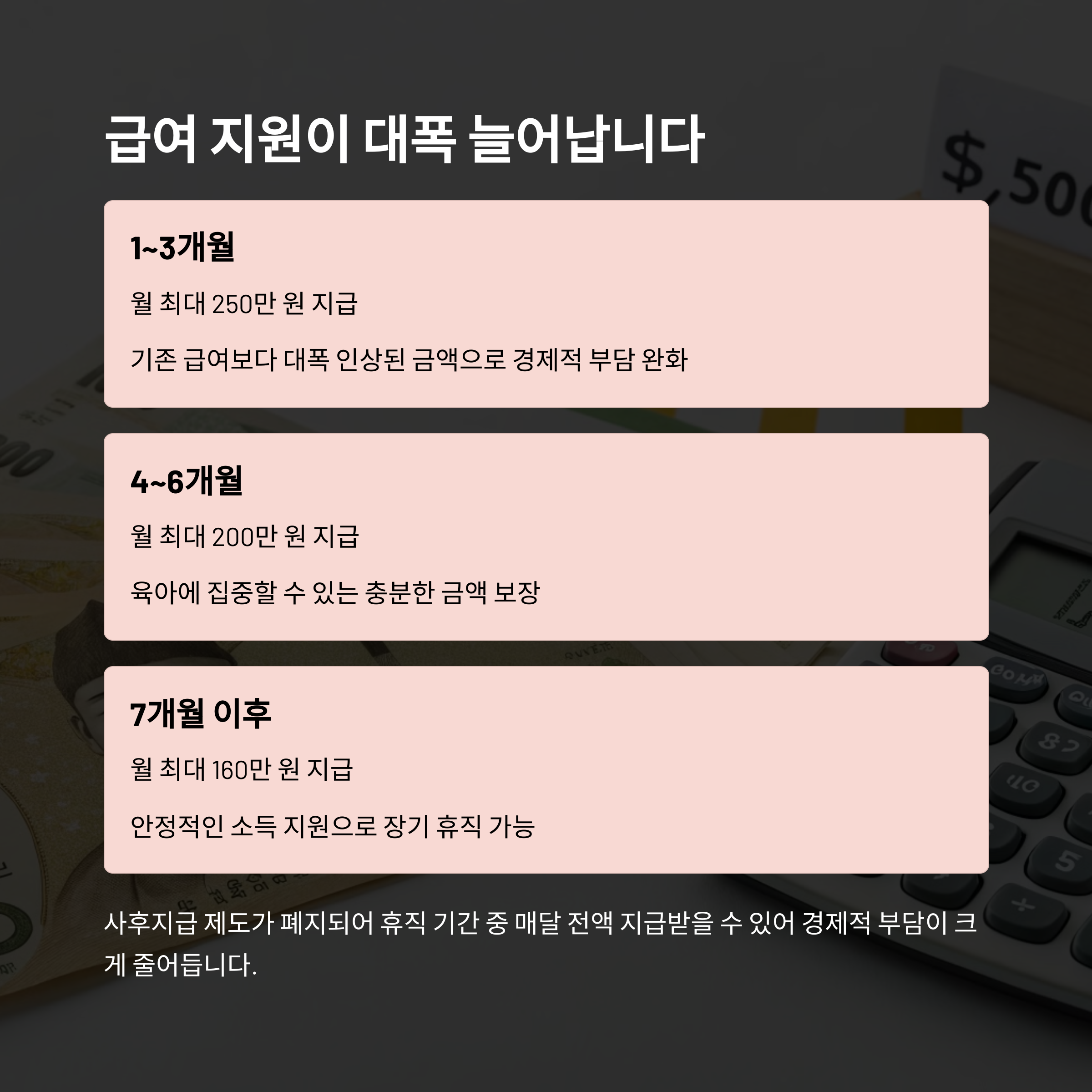 이 정도면 육아휴직으로 인한 경제적 부담도 꽤 덜어지겠죠? 저도 솔직히 이 금액 상승 보고, '이제 좀 숨통 트이겠다' 싶었어요.