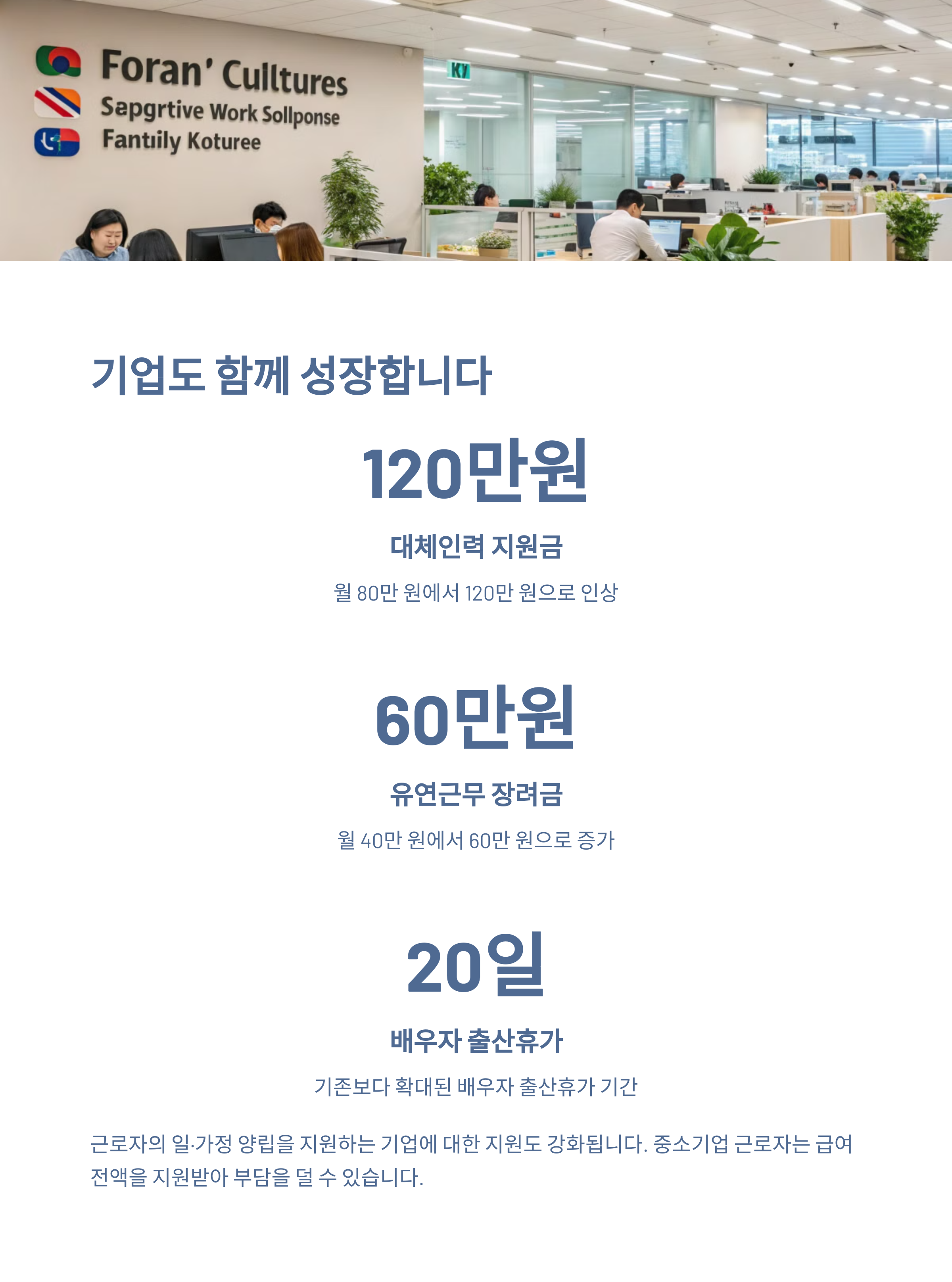 • 중소기업 부담 완화 위해 대체인력 지원금 강화